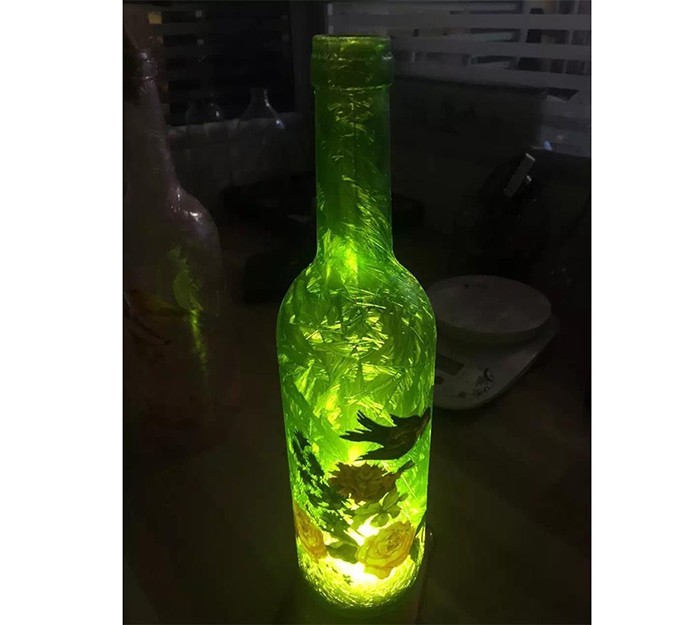 蒙砂酒瓶是在制品玻璃上,粘附一定大小面積的玻璃色釉粉,玻璃瓶廠經(jīng)過(guò)580~600℃的高溫烘烤,使玻璃色釉涂層凝結(jié)在玻璃外表,并顯現(xiàn)出具有與玻璃主體不同顏色的一種裝飾辦法。粘附玻璃色釉粉,可用排筆涂刷,亦可用膠輥滾涂。經(jīng)過(guò)絲印加工,能夠得到蒙砂面的樓空?qǐng)D案。 其辦法是:在玻璃制品外表上,絲印一層由阻熔劑構(gòu)成的圖案紋樣。
